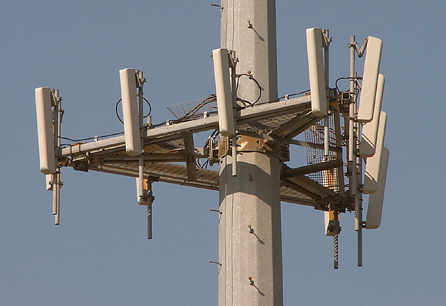 The standardized antenna configuration in Virginia consists of 12 Andrew DB844 antenna mounted in a 4 x 3 configuration with even spacing (Fig. 1-1). There is also a lesser used 3 x 3 configuration as well (Fig. 1-2). Caution is warrented as Nextel is very fond of deploying the DB844 in a 4 x 4 configuration in the same markets as Alltel. Another commonly used antenna configuration utilizes Andrew DB876 paddle antenna (Fig. 1-3). The DB876 paddle antenna are highly directional and very difficult to pull readings from. In the Charlottesville market the the DB876 paddle antenna is often paired with another longer Andrew Decibel style antenna (Fig. 1-4). Newer sites in the Norfolk network are now using the DB846 antenna which an extremely long version of the DB844. The DB846 are usually installed in a 2 x 3 configuration (Fig. 1-5). As with the DB844 4 x 3 configuration Nextel has also taken a strong liking to this antenna configuration but deploys the DB846 in a 4 x 3 configuration. In Richmond, Alltel still has a large number of sites that utilize antenna from Sinclair Communications. These antenna look like a white wedge with a mesh reflector backing and come in short (SE414-A) and long versions (SE419-A) (Fig. 1-6). Alltel sites in the Mississippi Gulf Coast region have a multi-vendor 3 x 3 antenna configuration. The middle antenna is an EMS Wireless antenna and mounted higher than the other two antenna (Fig. 1-7). The EMS Wireless antenna most like support Alltel CDMA customers while the prexisting antenna are for legacy Cellunet TDMA customers.